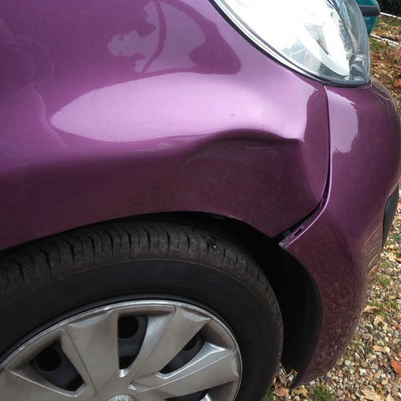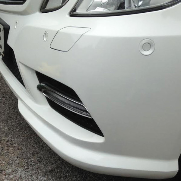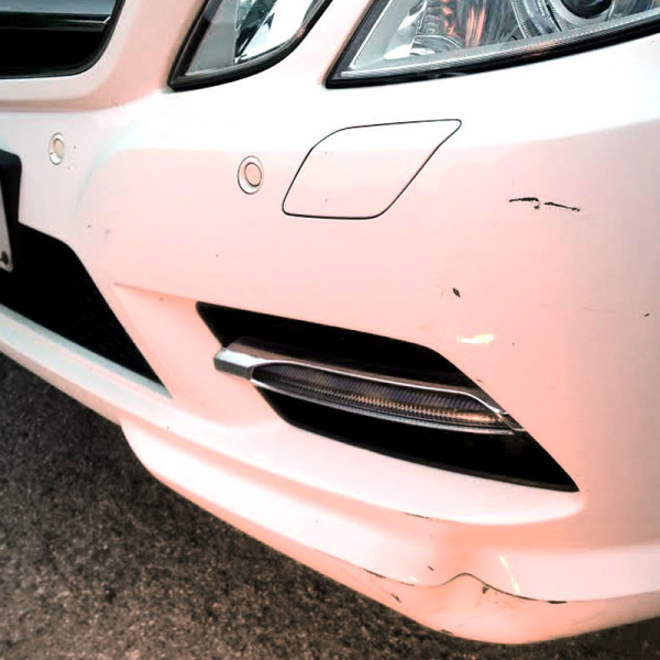 This Mercedes E Class required the dented and scuffed front bumper to be repaired.