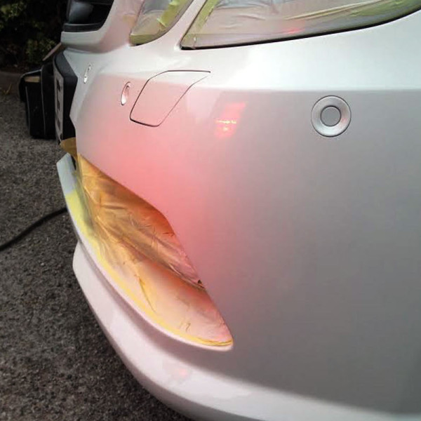 The first stage was to heat the bumper to a specific temperature in order to be able to restore the shape without stretching the plastic.